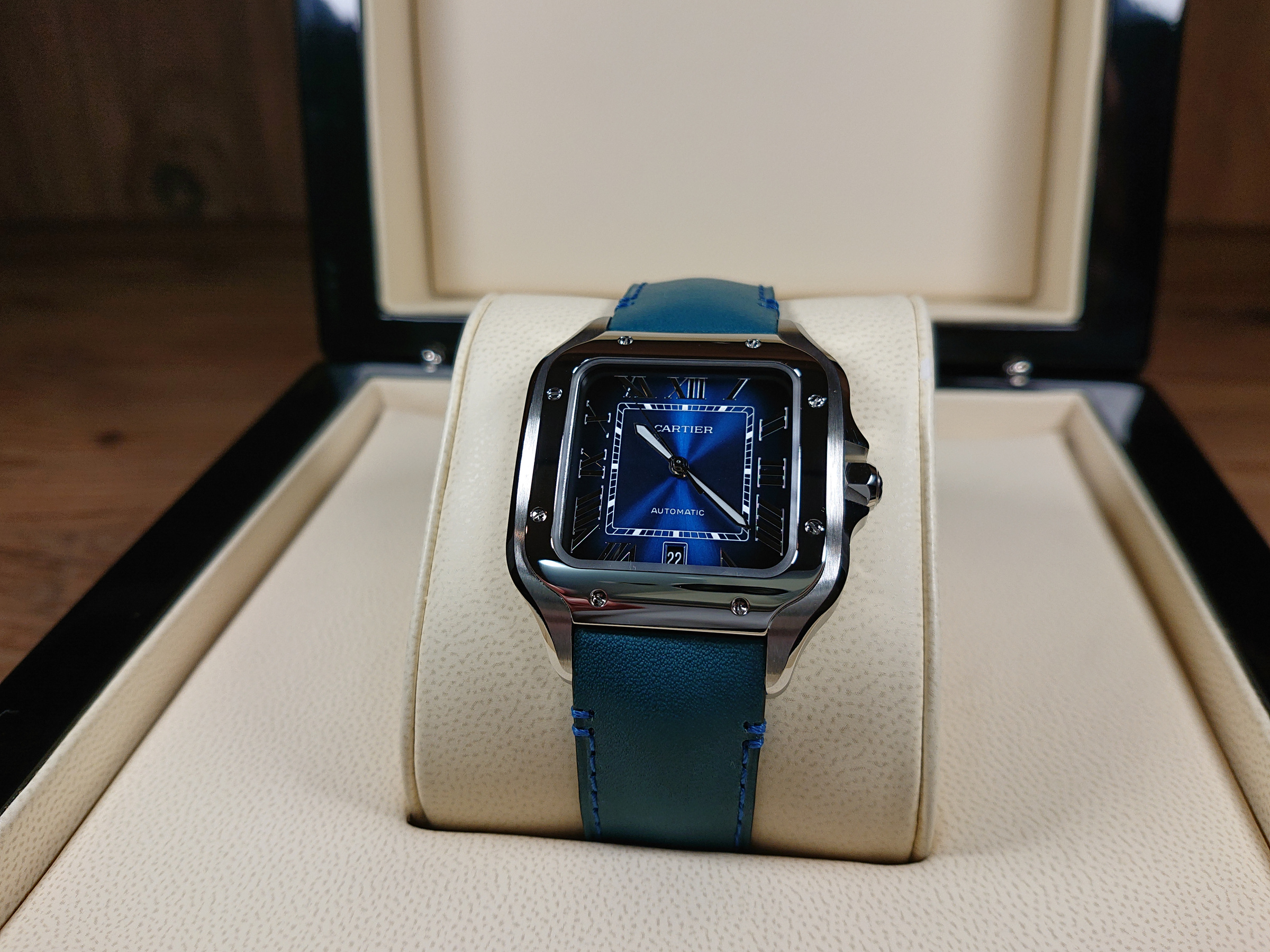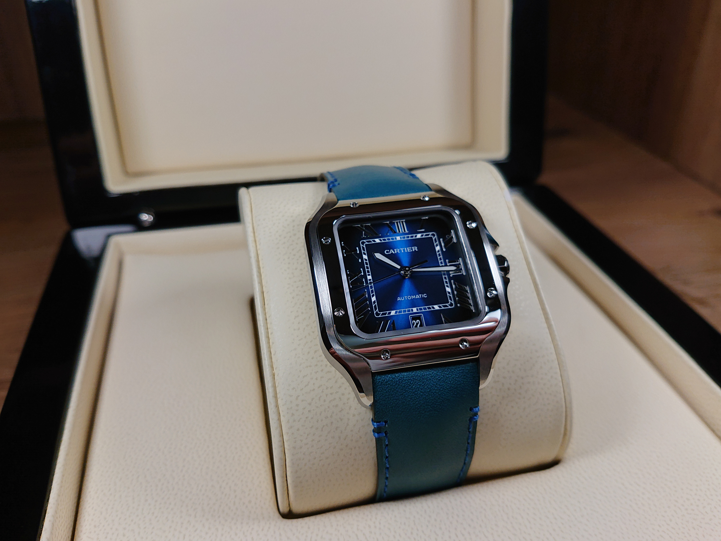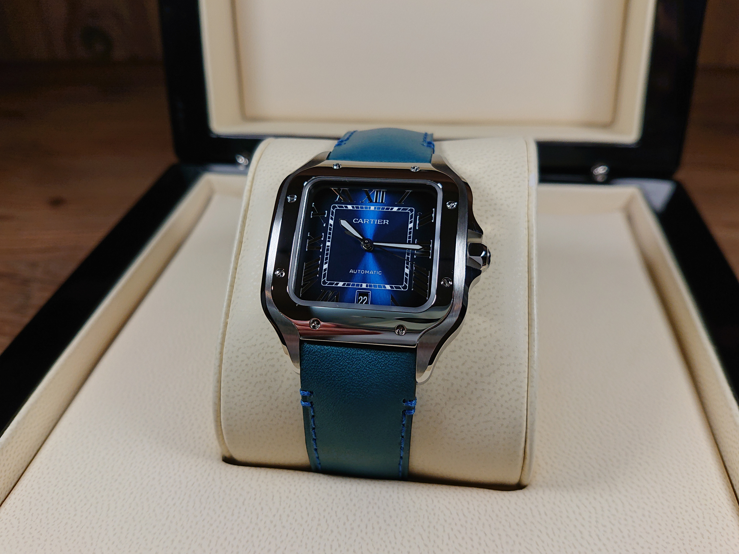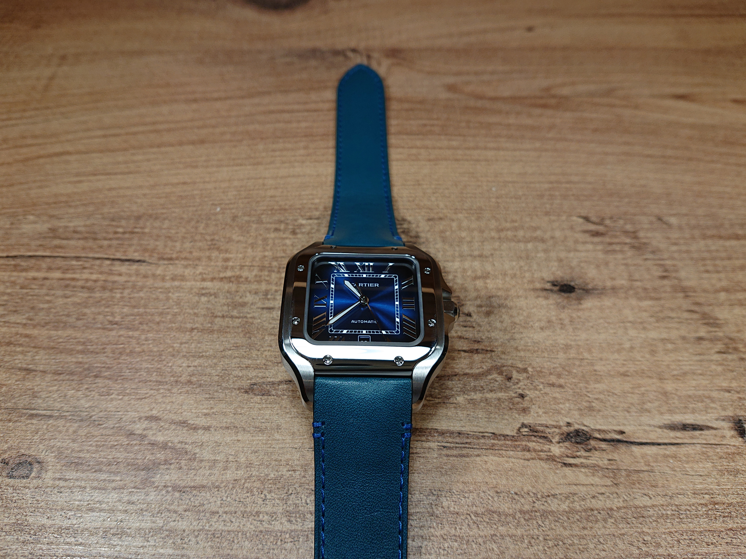 CARTİER SANTOS BLUE XL + YEDEK DERİ MAVİ KORDON